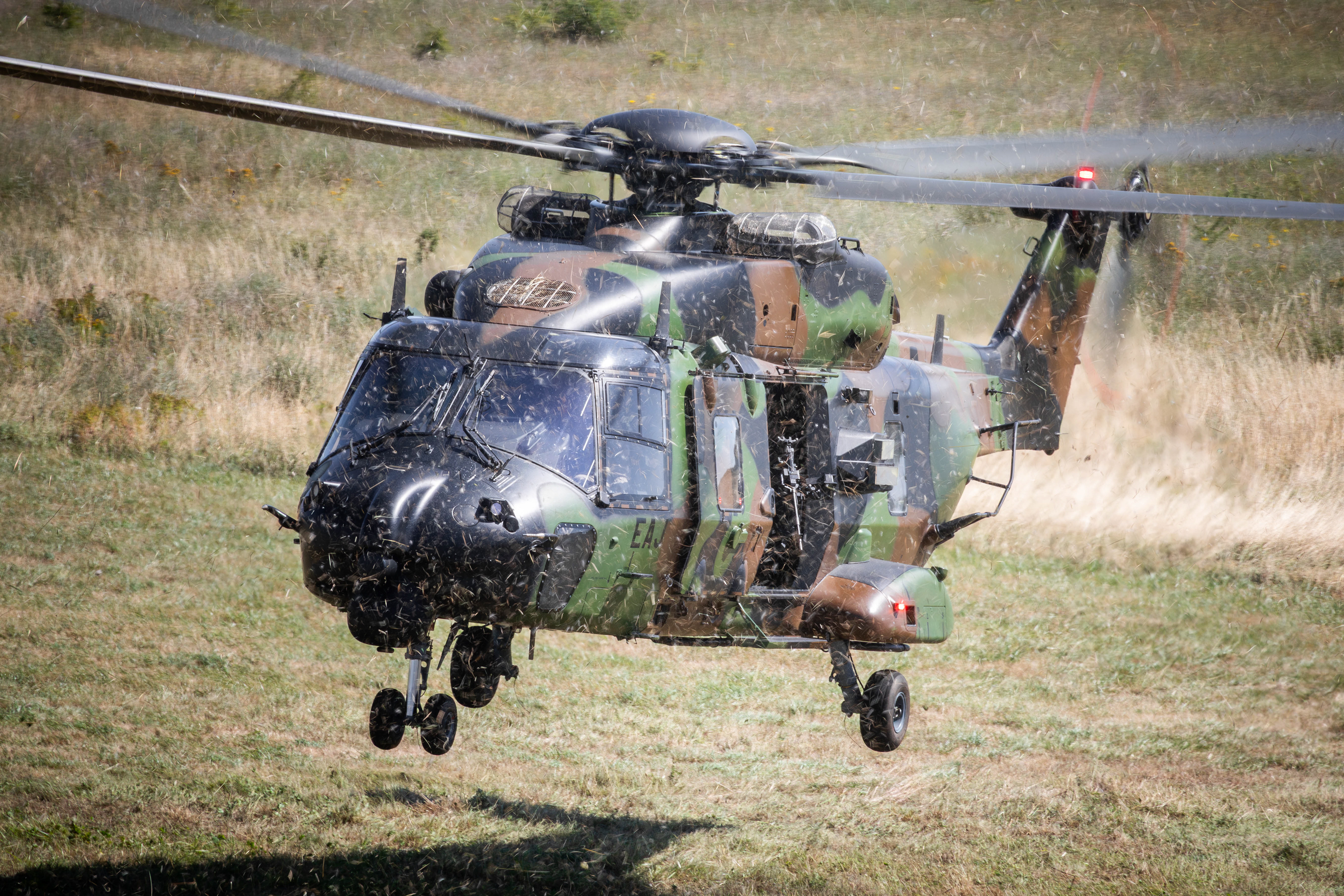 - Un NH90 Caïman du même régiment, successeur moderne du Puma et dans un futur plus lointain du Cougar, dédié aux missions d’assaut tactique, de transport de troupes, d'évacuation sanitaire (MEDEVAC), d'infiltration/exfiltration de forces spéciales et d'opérations de nuit en zone hostile ;