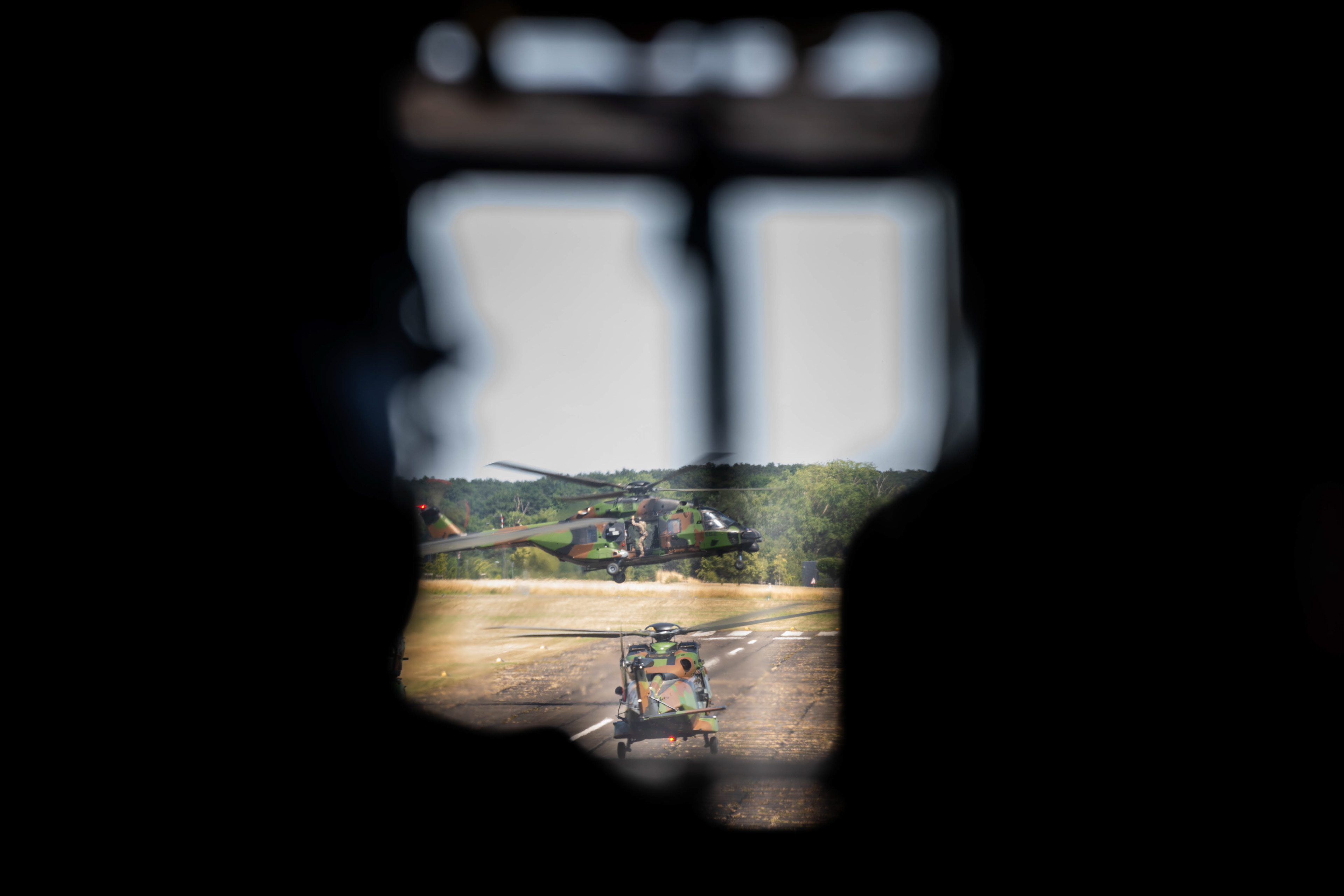 - Un Tigre HAP du 1er RHC, hélicoptère d’attaque emblématique capable de réaliser de l'appui feu rapproché (CAS), de la destruction de cibles lourdes (blindés, positions) mais également des escortes de convois ou d’hélicoptères et du renseignement et reconnaissance offensive ;