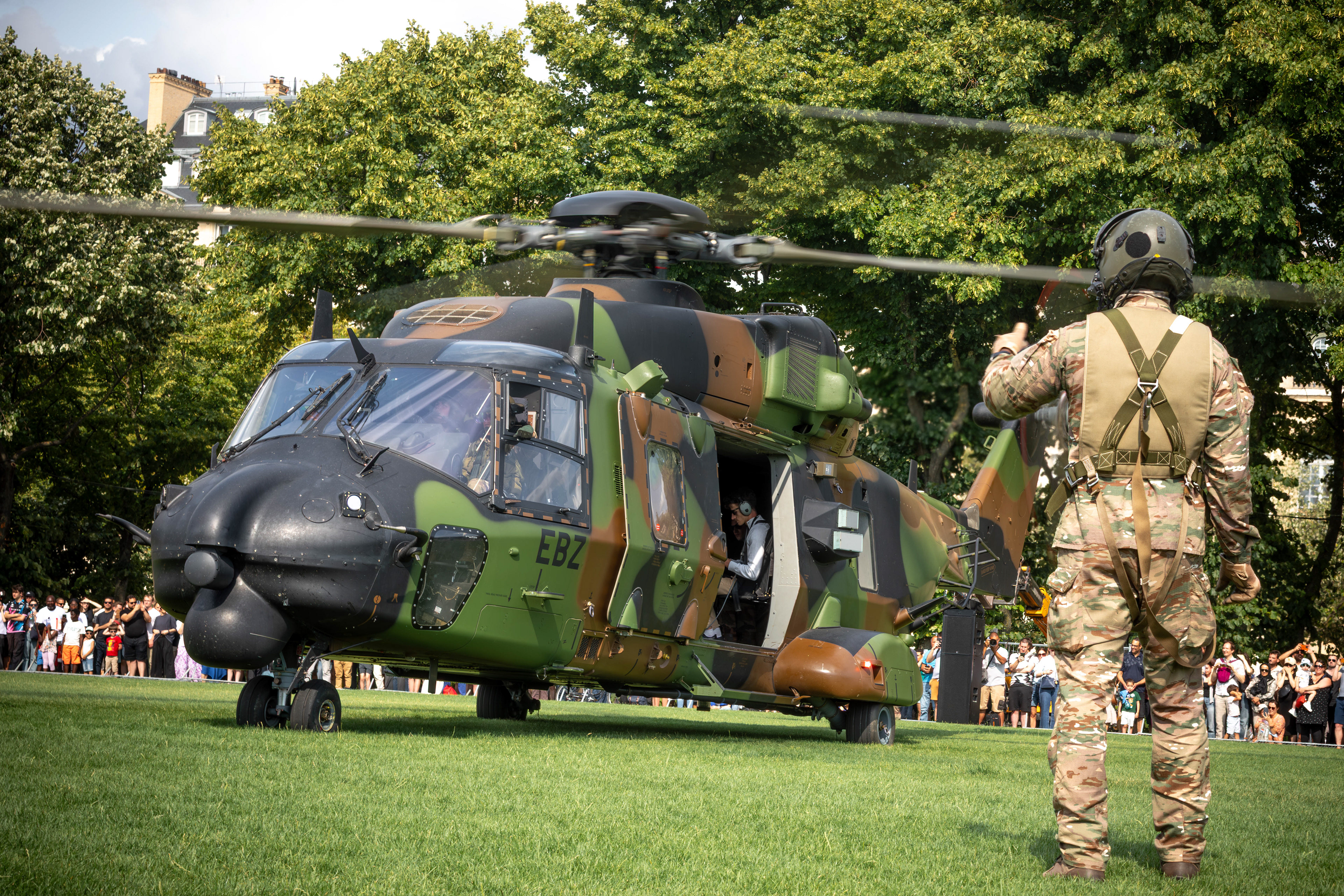 Dans le prolongement du défilé aérien, une tradition bien ancrée permet au public venu admirer le défilé de prolonger l’expérience militaire : chaque année, plusieurs hélicoptères participant à cette parade viennent se poser sur l’esplanade des Invalides, en plein cœur de la capitale pour une exposition statique ouverte au public. Véritable vitrine des capacités aéromobiles françaises, cet événement attire passionnés, familles et curieux, venus échanger directement avec les équipages et découvrir les appareils de près. Cette année, 10 hélicoptères appartenant aux trois grandes forces armées ainsi qu'à la Direction générale de l’armement (DGA) s'y sont posés. Un panel varié, illustrant la diversité des missions et des équipements déployés aujourd’hui par les forces françaises.