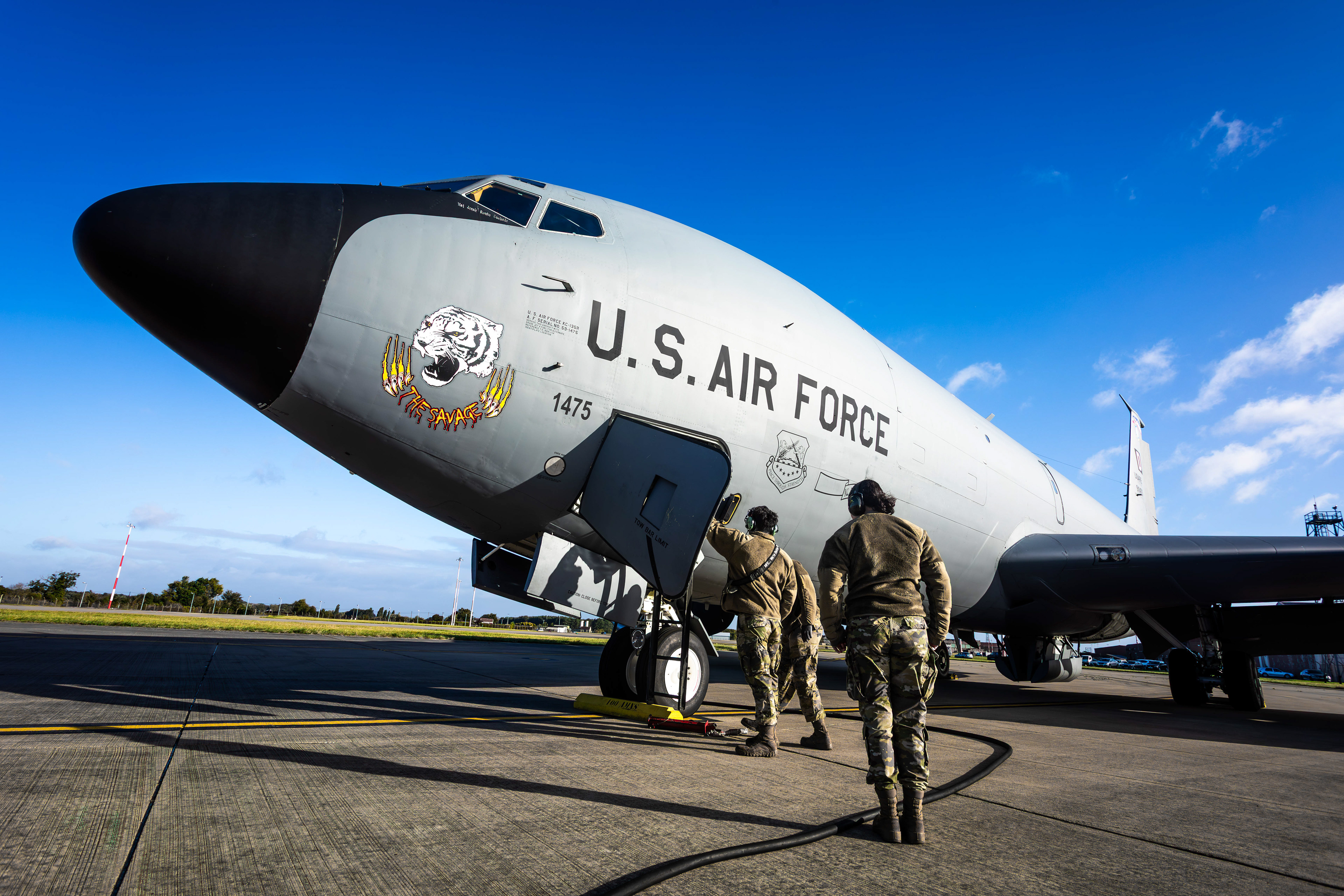 La première journée de ravitaillement en vol a été annulée en raison de rafales dépassant 50 nœuds, jugées trop dangereuses pour l’éjection des pilotes d’Eurofighter. Je devais participer à un premier ravitaillement entre un KC-135 américain et un P-8A britannique, prévu pour démontrer la coordination interalliée ainsi qu'à un ravitaillement de 4 F-15 américains en simultané. La mission initiale était de ravitailler 8 F-35 de la même nation, mais malheureusement aucun des deux ravitailleurs n'est parti.