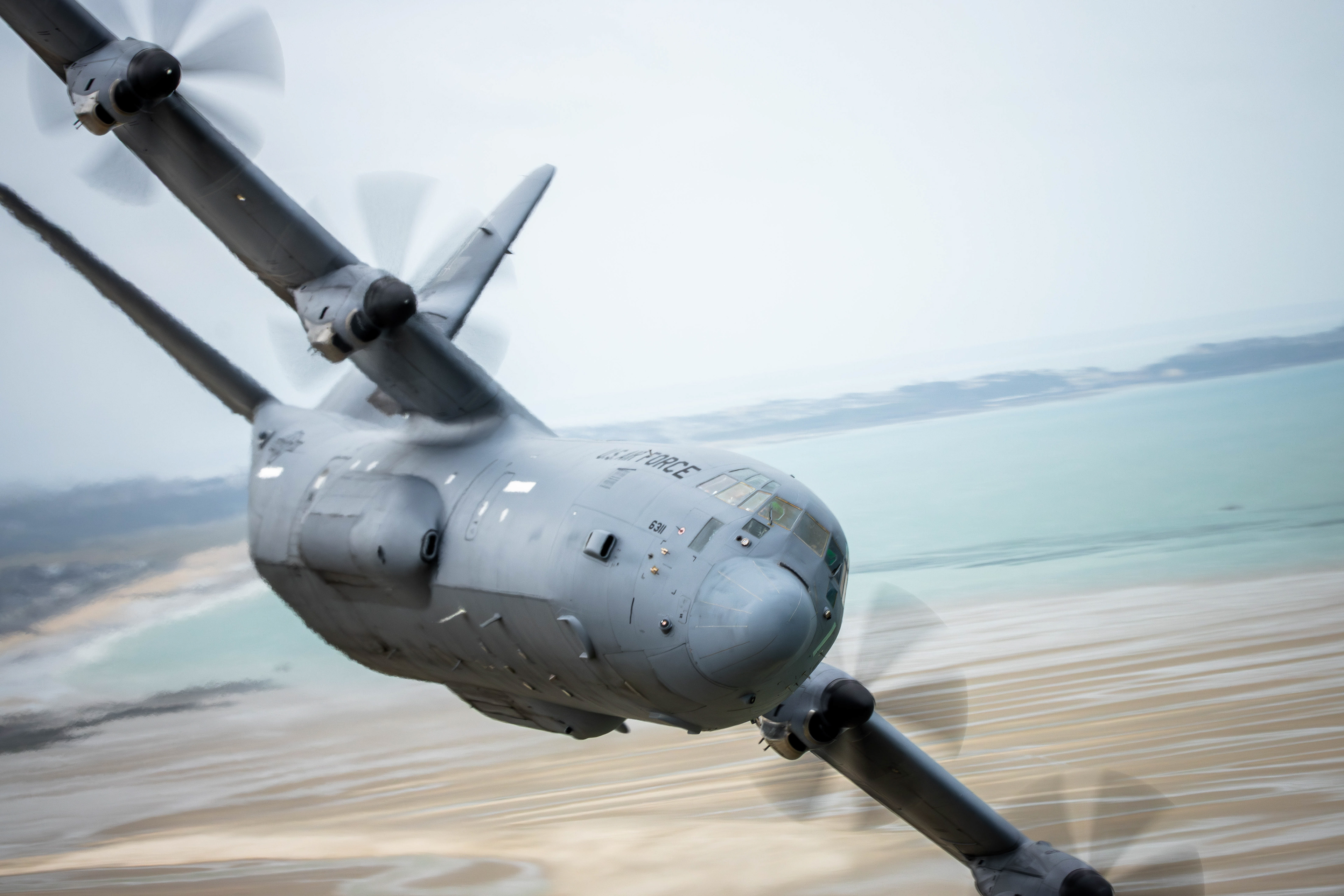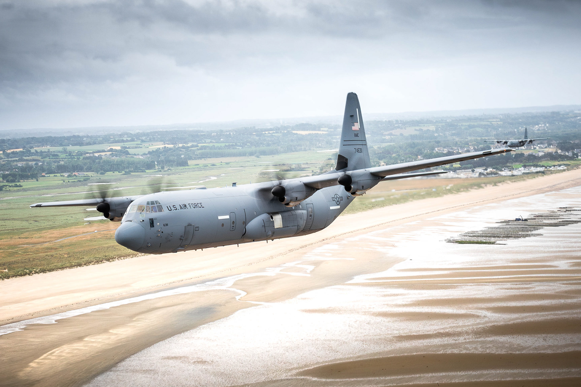 Le tarmac vibre sous le grondement des quatre moteurs Rolls-Royce AE2100D3 du C-130J Super Hercules, chacun délivrant ses 4 637 shp. Derniers checks dans le cockpit, radios tactiques actives, IFF mode 3A en stand-by. Brief rapide du flight lead : départ en formation losange serrée, cap sud-est. Une demi heure plus tard, les 4 avions s’alignent sur la piste 28 pour un départ cadencé. Rotation, positive climb, gear up, stabilisation à 300ft puis virage à 120 degrés par la gauche. Premier objectif : mission d’infiltration tactique en très basse altitude au-dessus de Courseulles-Sur-Mer. Profil : 300 pieds AGL, 250 noeuds, vol en formation, navigation terrain-visual.