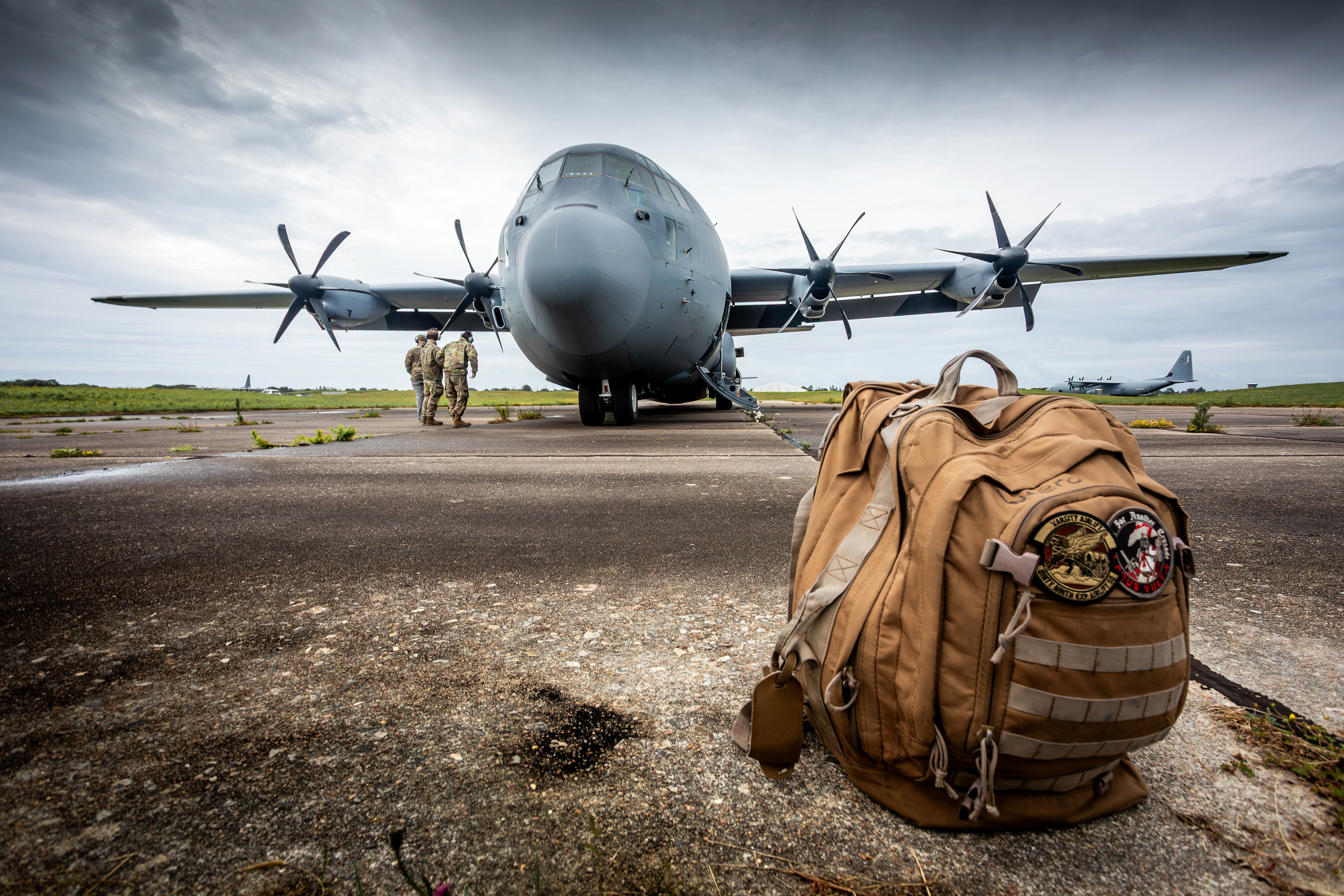 Après quelques semaines d'organisation, nous partons pour 4h de route depuis Paris la veille au voir, le rendez-vous étant fixé au terminal de Cherbourg à 7h le lendemain matin. Nous sommes conduits vers la dizaine de C130 stationnés à Maupertus ... dans lequel allons nous embarquer ? Le temps est venu pour le briefing de sécurité avec les ''loadmasters'' du jour. Ils assurent non seulement le bon équilibrage du matériel et des passagers, mais veillent aussi à la sécurité de toutes les opérations de chargement et de largage. Leur expertise est indispensable lors des parachutages tactiques, où précision et réactivité sont vitales pour le succès des missions. Véritables chefs d’orchestre dans la soute, ils coordonnent aussi les mouvements des troupes et supervisent les procédures d’urgence, garantissant ainsi la fluidité et la sécurité à chaque étape du vol. Sur notre vol, ils étaient majoritairement en charge de la prise en charge des médias et de l'ouverture/fermeture de la soute pour nous permettre de réaliser des prises de vues des autres C130 de notre formation.