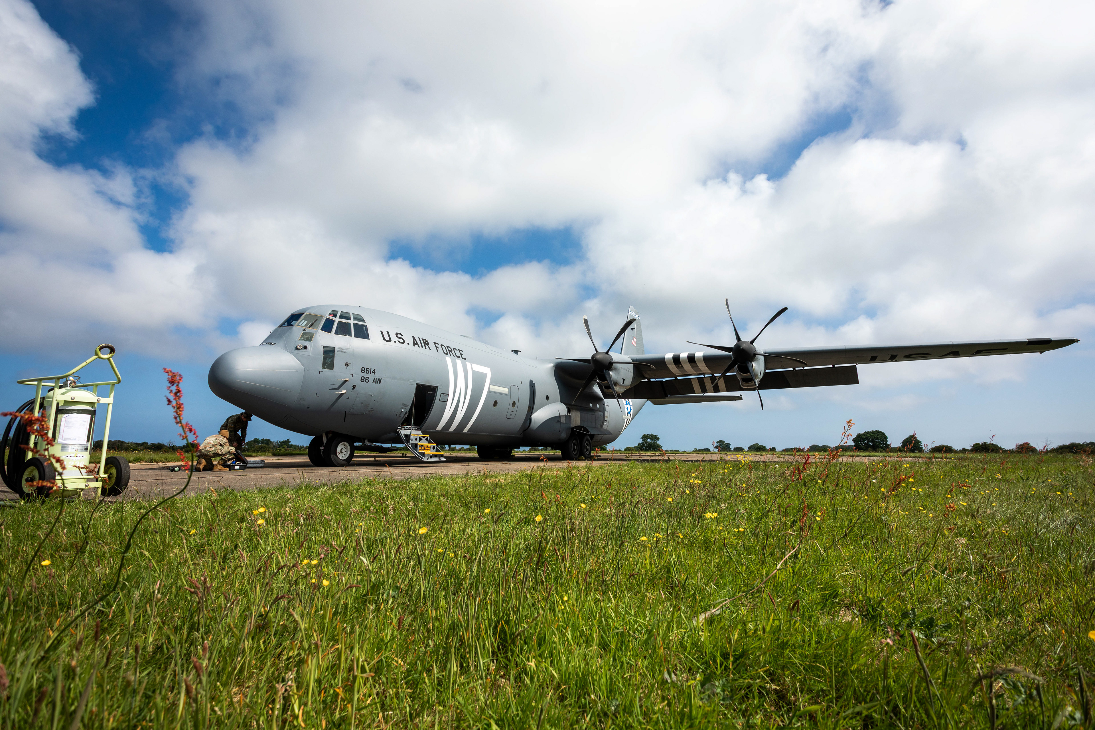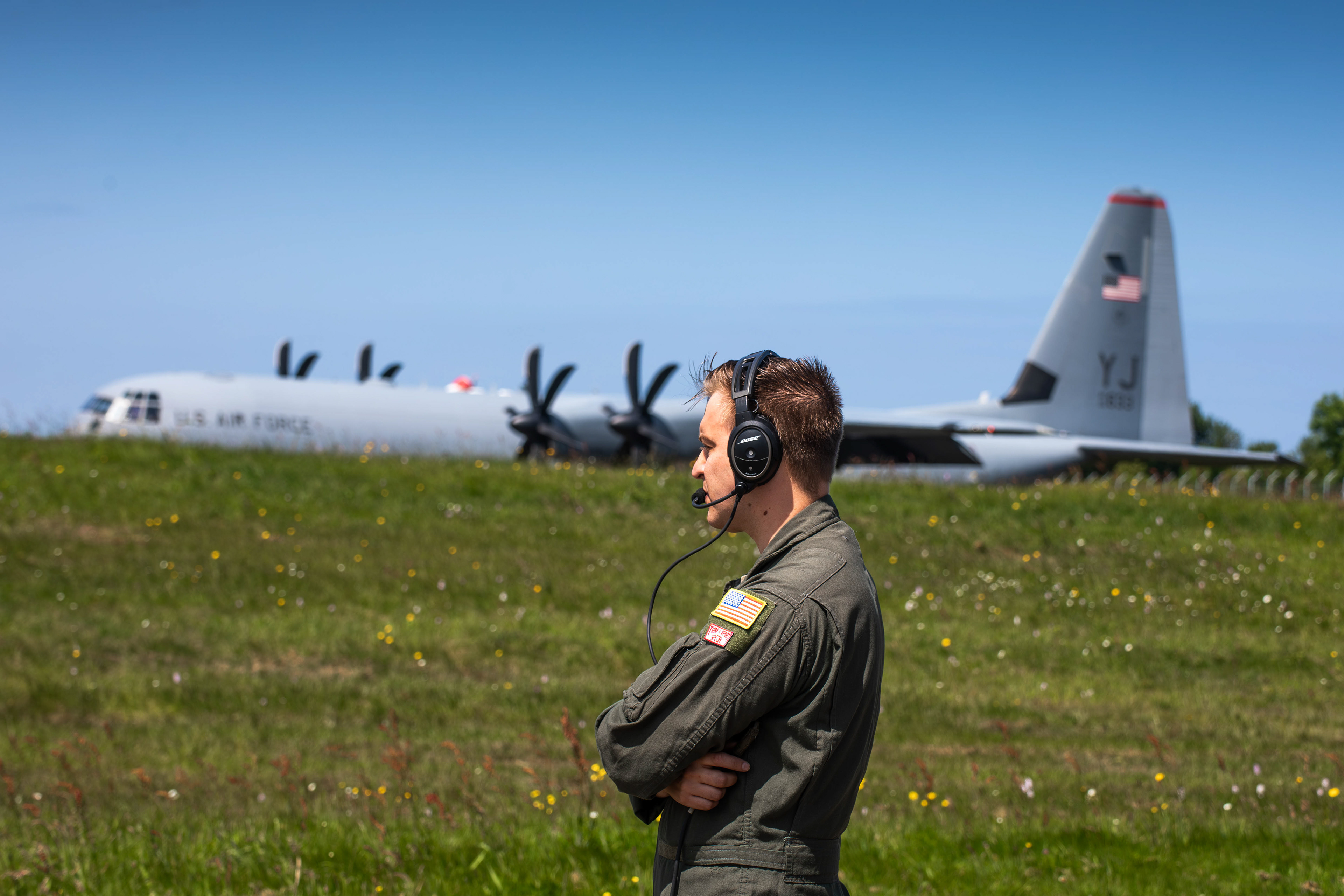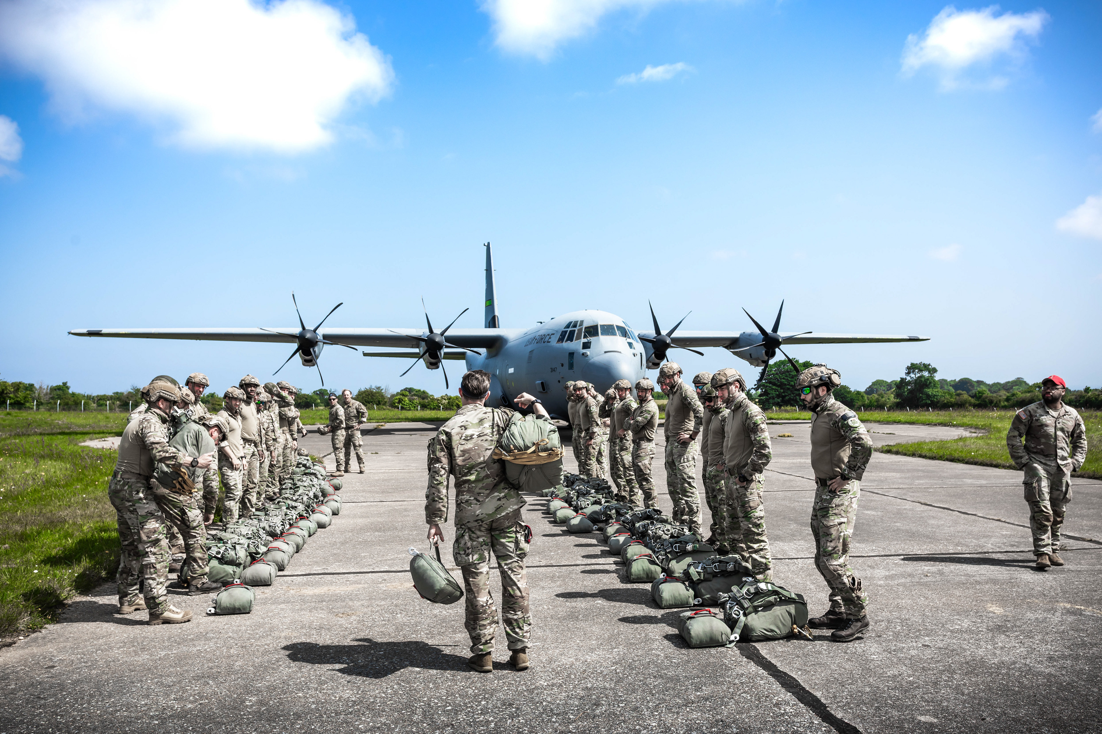 Le 5 juin, sous l’heure bleue normande, le tarmac de Cherbourg-Maupertus bruisse d’effervescence. À 7h30, après un briefing sécurité matinal et la distribution des indispensables motion sickness bags, tu rejoins le C‑130 05‑3147 pour un vol prévu de près de 3h30, avec largage de parachutistes belges au-dessus de Sainte-Mère-Église.