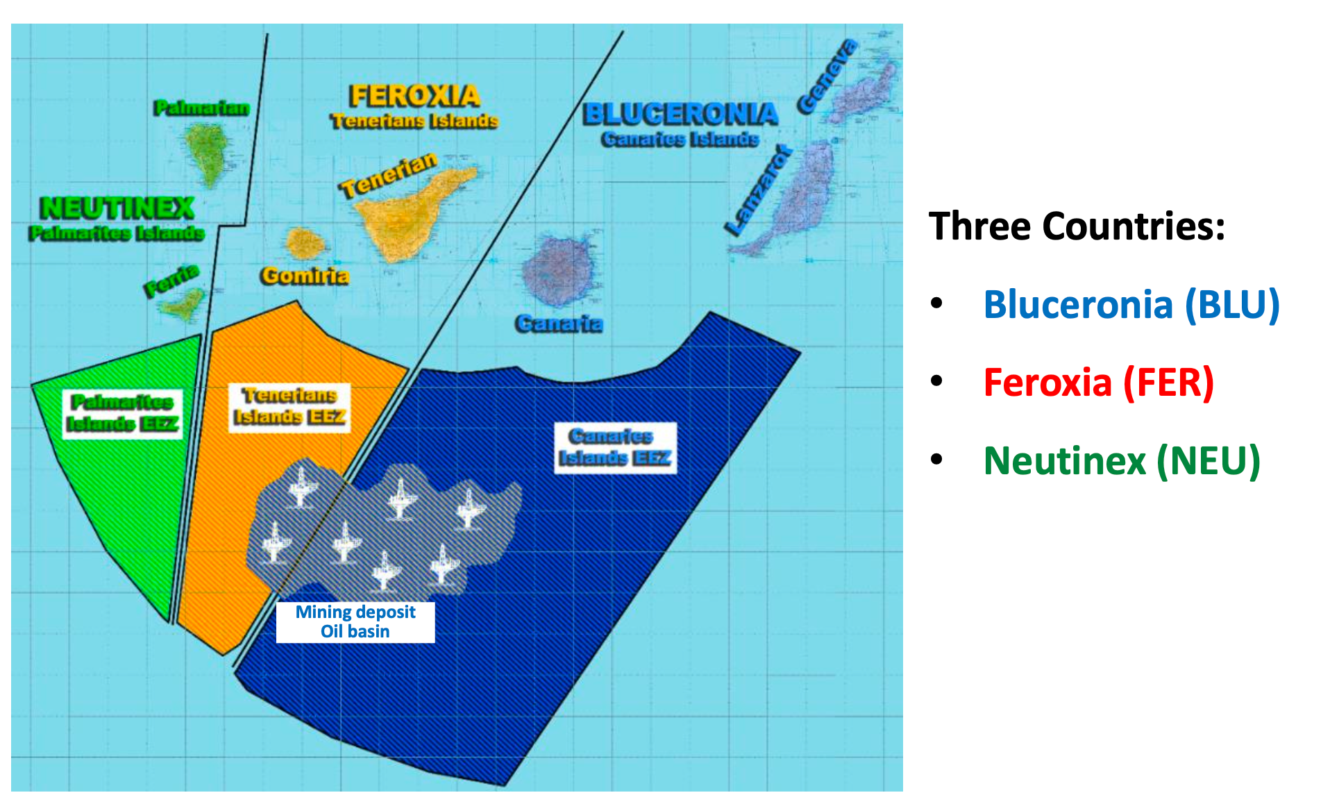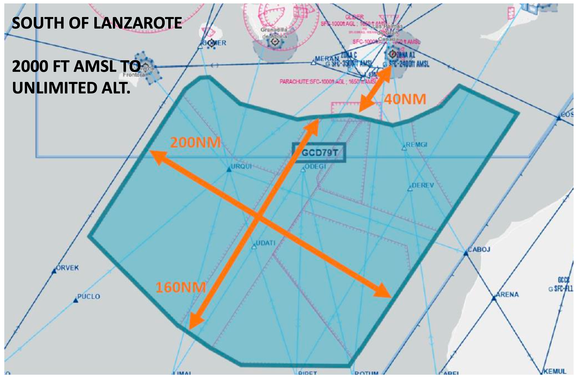 L’édition 2025 d’Ocean Sky se déroule dans un espace aérien unique en Europe : une zone d’entraînement située au sud de l’île de Lanzarote, s’étendant du niveau 2 000 ft AMSL jusqu’à l’altitude illimitée. Cette liberté verticale permet d’enchaîner combats BVR, engagements en basse altitude, ravitaillement en vol et couverture de hautes valeurs stratégiques sans contrainte d’espace, un atout rare sur le continent. Le cadre tactique repose sur un scénario géopolitique fictif opposant trois nations :