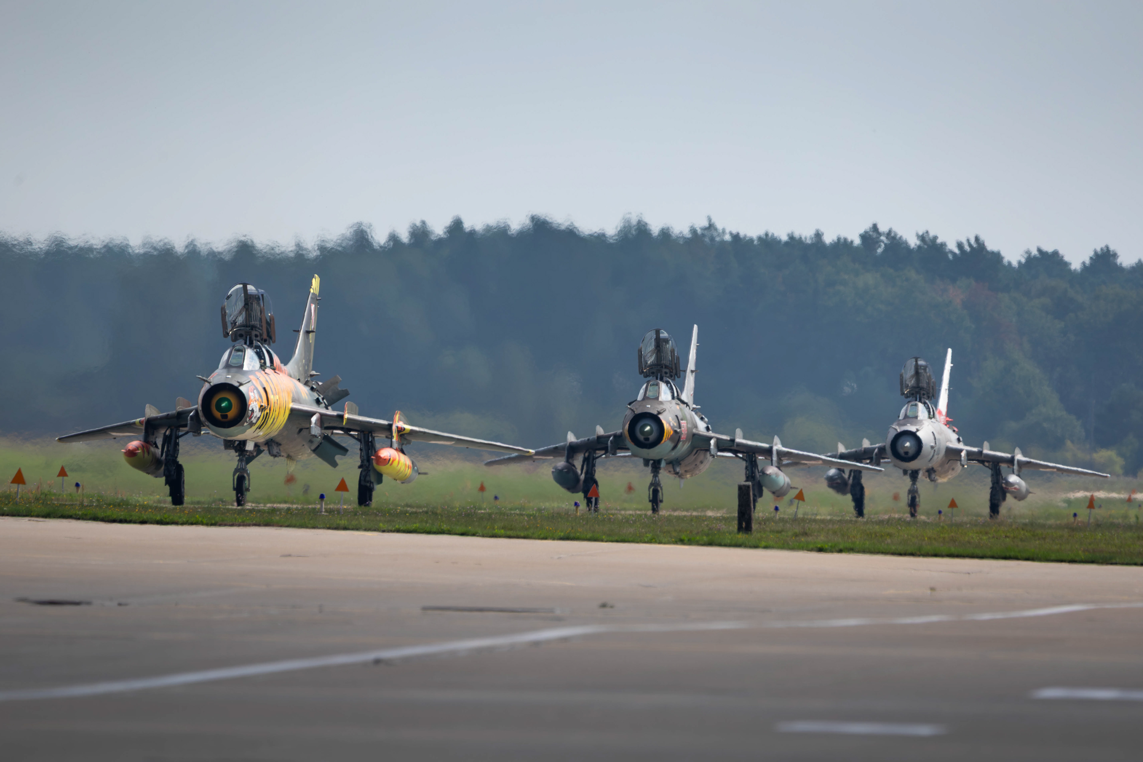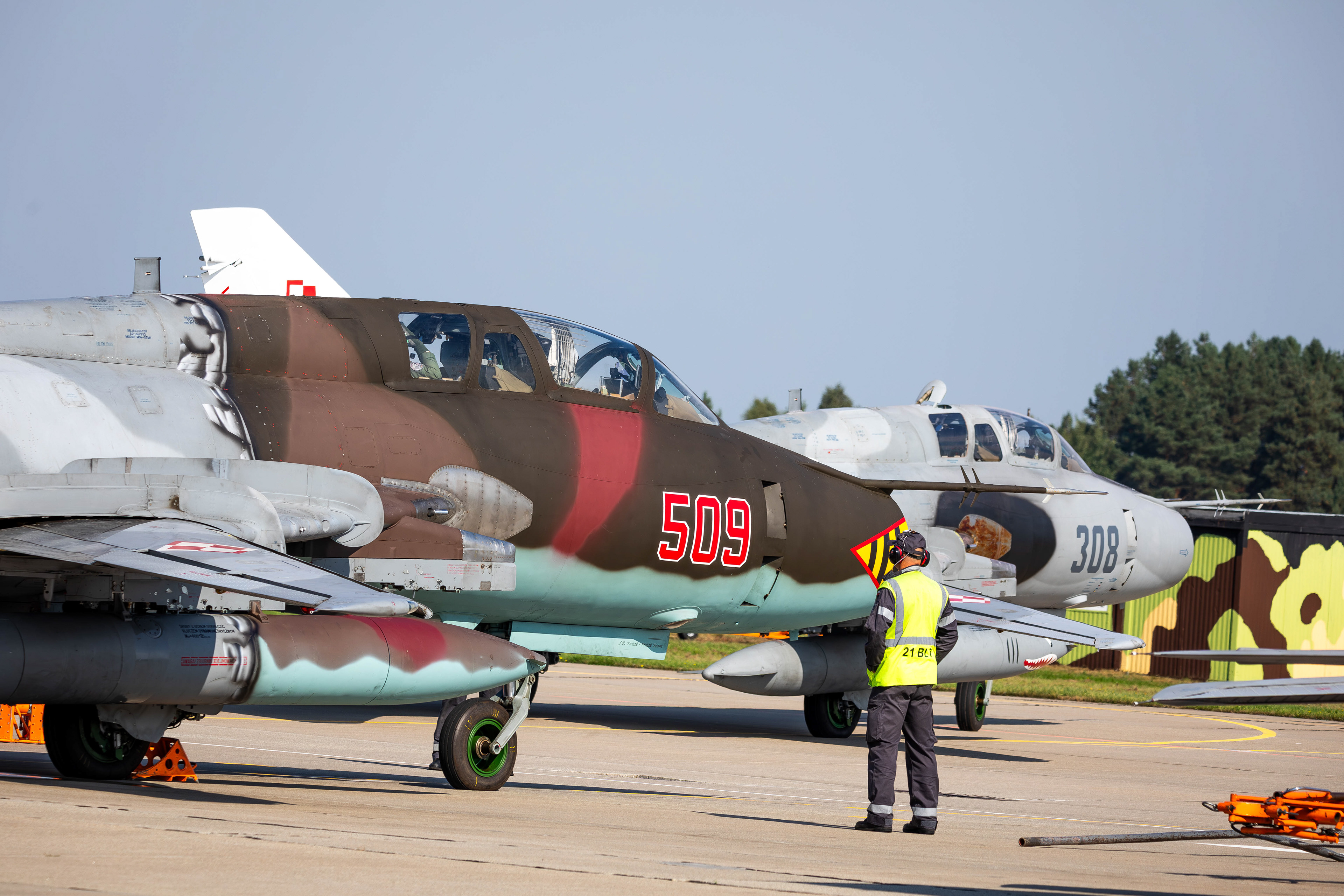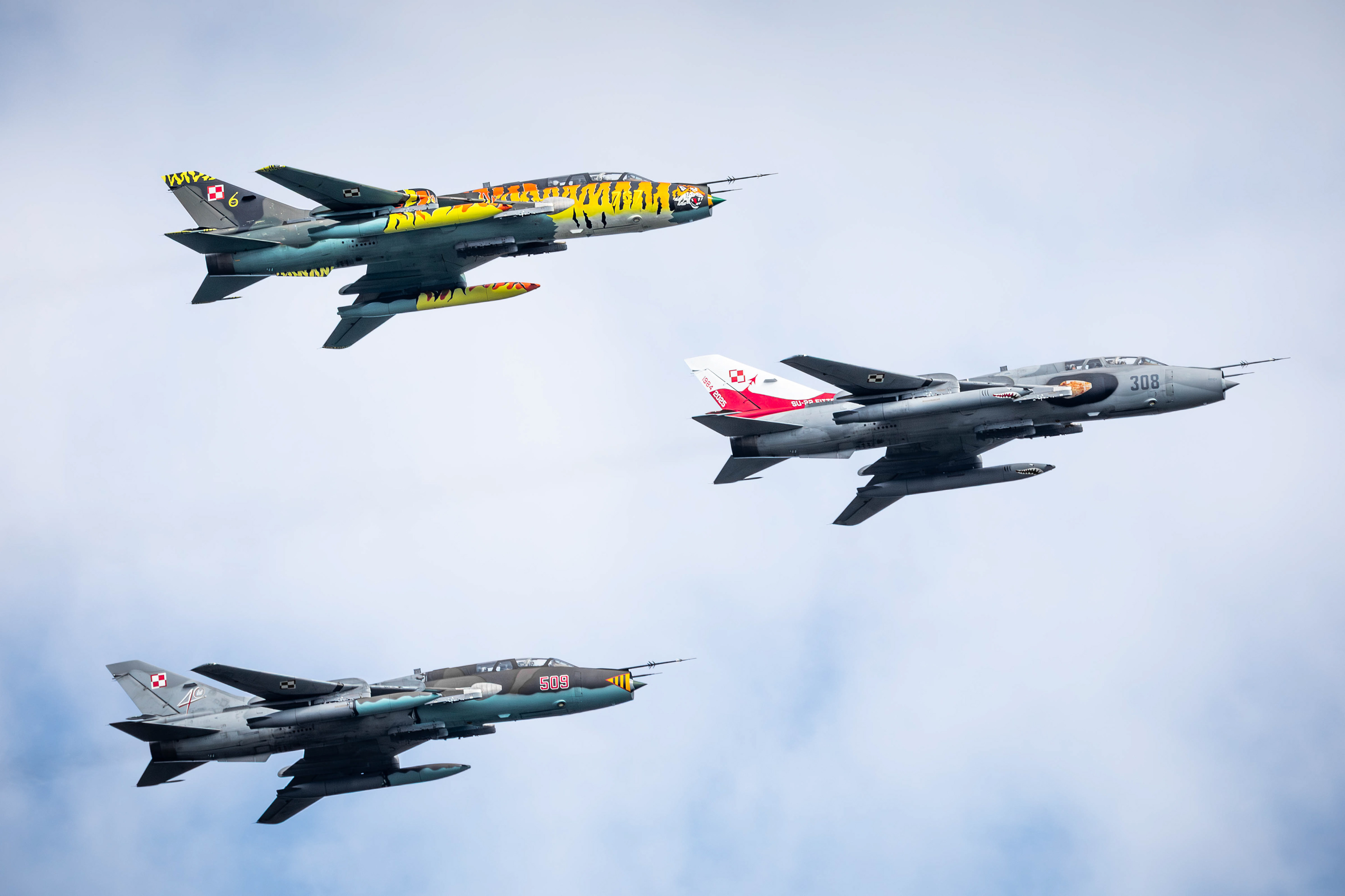 Le 10 septembre 2025 sous un beau ciel bleu, trois silhouettes familières rugissent une dernière fois au-dessus de Poméranie. À bord, les pilotes savent qu’ils écrivent la dernière page d’une histoire commencée il y a plus de 40 ans. Les Sukhoi Su-22 de la Siły Powietrzne tirent leur révérence. Entrés en service au milieu des années 1980, les Su-22M4 et Su-22UM3K (version d'entrainement du M4) ont constitué l’épine dorsale des capacités d’attaque au sol polonaises. Hérités de l’époque du Pacte de Varsovie, ils ont survécu à la chute du Mur, à l’adhésion à l’OTAN et à plusieurs vagues de modernisation.