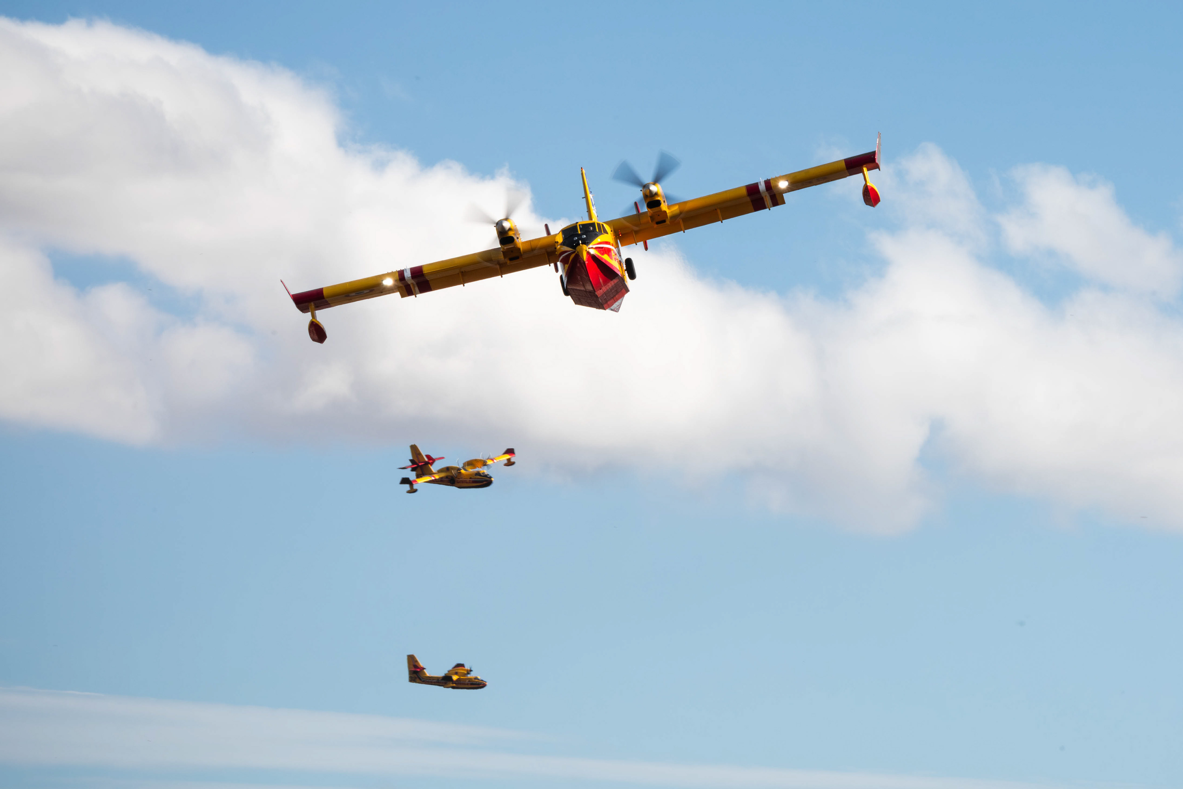 Il existe plusieurs types d'avions bombardiers d'eau dans la flotte nationale de la Sécurité civile : les Canadair, les Tracker, les Dash et les Beechcraft. Pilotés par des professionnels, ils sont essentiellement mobilisés pour des missions de prévention, de reconnaissance et d'extinction des feux de forêts. Ils interviennent en coordination avec les sapeurs-pompiers mobilisés au sol.
